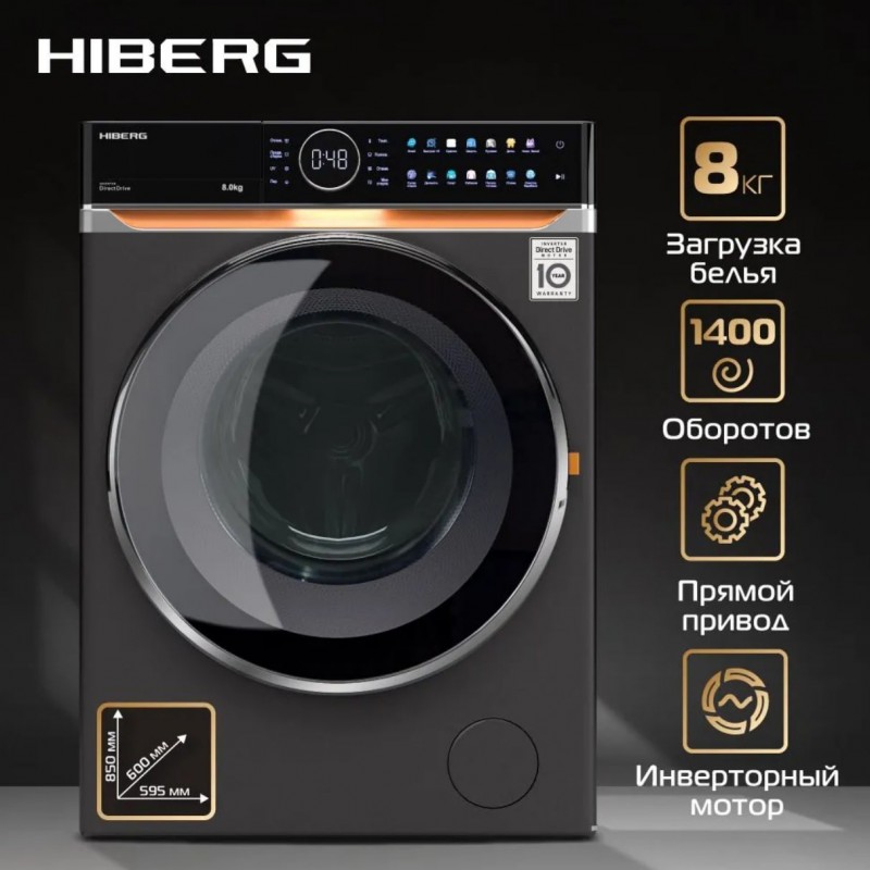 Инверторная машина-автомат HIBERG i-DDQ10 - 814 Sd отстирывает до 8 кг белья за цикл стирки.