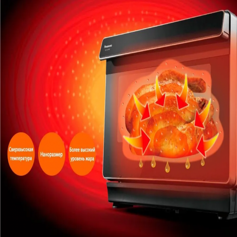 При использовании 3х типов теплогенерации еда интенсивно пропекается, как изнутри, так и снаружи, что значительно ускоряет процесс готовки. Высокотемпературный пар испаряет лишнее масло и соли, при этом сохраняя питательные вещества. Уровень испарения масла 130% по сравнению с обычной конвекционной печью По сравнению с готовкой на пару новая система позволяет сохранить 130% антоцианина и 115% таурина.