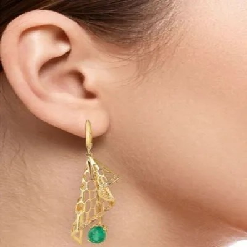 Шикарные серьги из желтого (лимонного) золота с изумрудами и бриллиантами для торжественных случаев и важных событий.